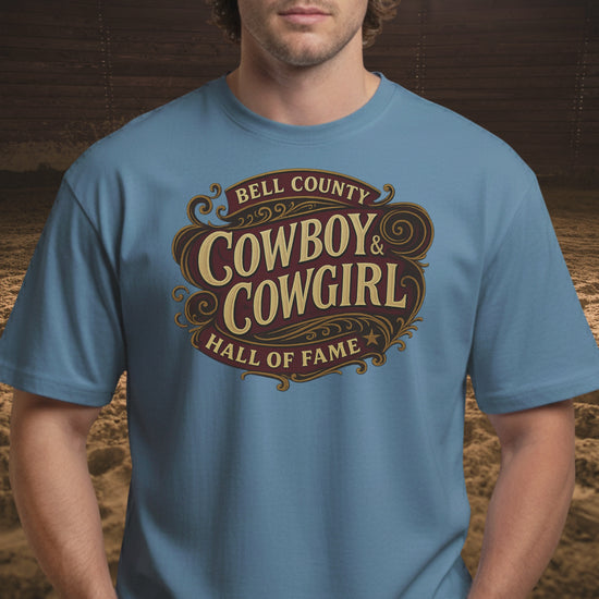 Featuring a Bell County Cowboy & Cowgirl Hall of Fame–inspired design, this shirt honors the ranchers, cattle raisers, horsemen and horsewomen, western artists, community leaders, and everyday hands who helped build and preserve our western way of life.